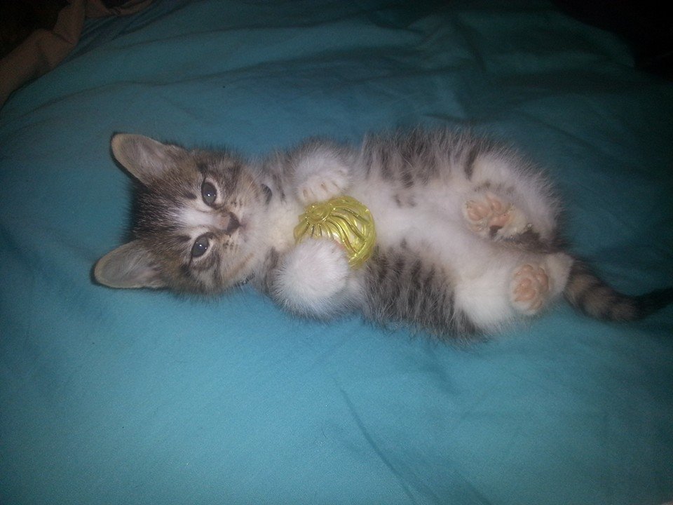 PLEASE PLEASE always make sure your furbaby is NOT under your recliner (if you have one) when you get up or sit down. Our little Loki snuck underneath James' recliner this afternoon and was hurt when James was trying to get up. We rushed him to the vet...$114 and a set of XRAYS and a shot for pain/shock later, he is recovering VERY slowly. However, we did find out, that the age we were given when we got our sweet Loki, was incorrect. We were told he was 6-8 wks old. According to the vet, he is actually just now 6.5 wks old ( and we've had him 2 wks). And he weighs less than 1lb. Loki has been VERY therapeutic for James and his moods. This kitten has given him something to look forward to when getting out of bed daily.