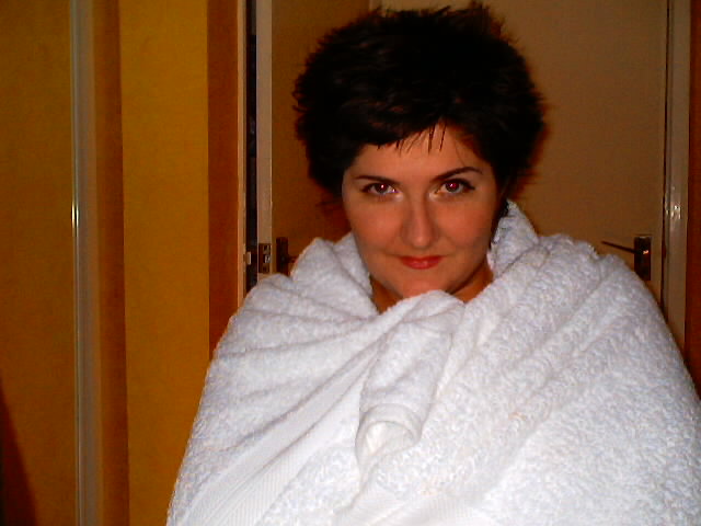 I've recently found that my breasts are far more photogenic than my face, but after much searching, I came up with this passable face pic, even if I do look a bit coy in it. I won't tell you what's under the towel. . .