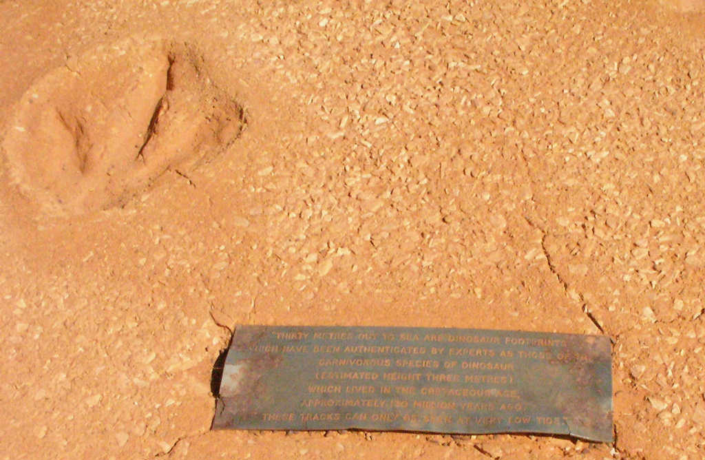 When PF was young,some dinosaurs left footprints in the rock, visible only at the lowest tide. Cement casts are higher up.