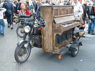 Thursday - so it must be Peel! The "Purple Helmets" were in town that day......... with a new addition! Any budding piano players out there who fancy a go?!?!