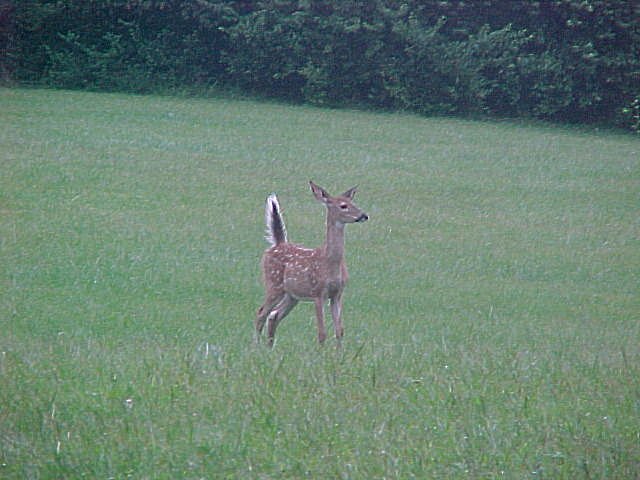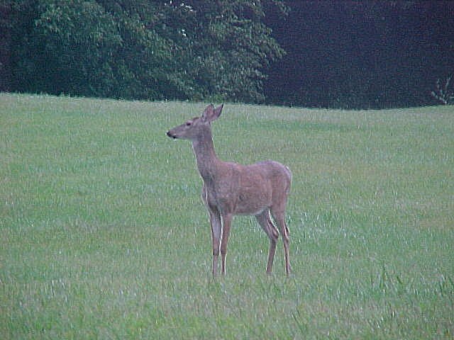 Just this morning, my wife and I went back out to the park where I saw the deer and we both saw five ... a group of three (doe and two fawns) and a separate doe and her fawn. Two really nice close-ups of the latter and one more distant shot of the former. The doe and her fawn (first two pictures) stayed within 50 feet of us for probably fifteen minutes ... grazing, looking, then grazing some more. They even posed a bit for the camera (or so I like to think  ).