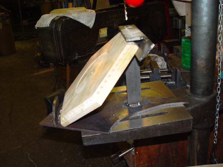 Last year I made sketches of the circular base that would always allow equal spacing for any number of national flags up to 8. With a dividing head I layed out the part and made a simple centering fixture for the drilling. The center hole was drilled and tapped for the standard used by the trophy industry if an elevated centerpiece is ever added.
