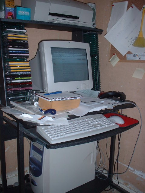 Had a nice brewski over there on the right and managed to spill it all over the papers on the desk and drowned the poor mouse.